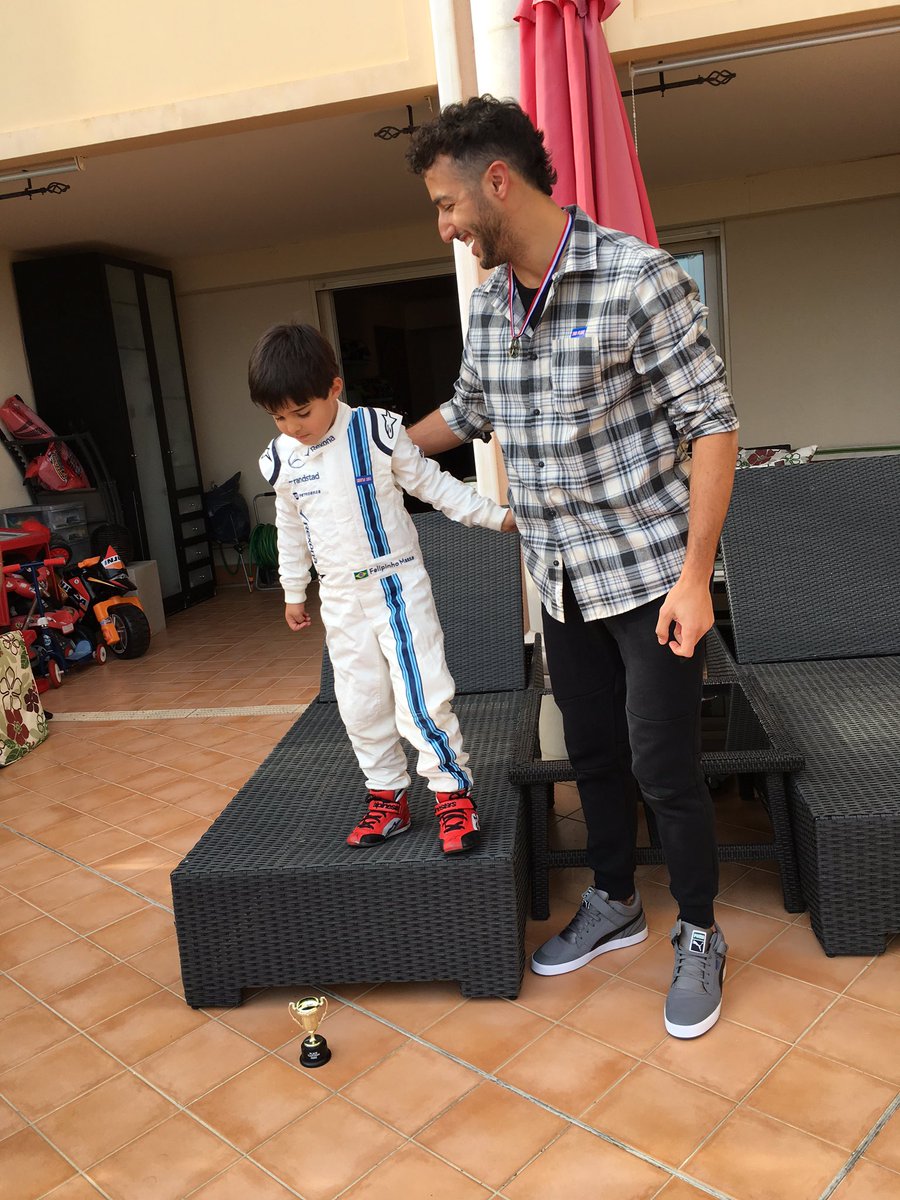 На выходных Даниэль Риккардо побывал в гостях у Фелипе Массы в Монако, где вместе с его сыном принял участие в картинговой гонке.