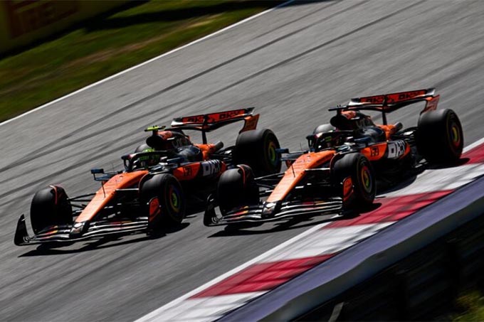 Почти всю гонку в Австрии Ландо Норрис провел под прессингом партнера по McLaren Оскара Пиастри. Британец победил с преимуществом в две секунды.