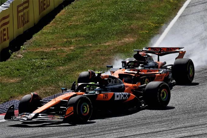 По ходу гонки в Австрии Оскар Пиастри едва не выбил с трассы партнера по команде Ландо Норриса. После финиша австралиец извинился.