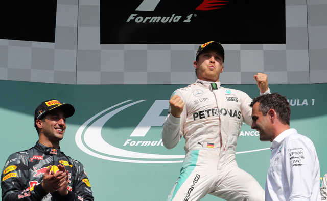 Победа в Бельгии стала 20-й в карьере Нико Росберга, и по этому показателю немец финского происхождения догнал двух финских чемпионов Мику Хаккинена и Кими Райкконена.