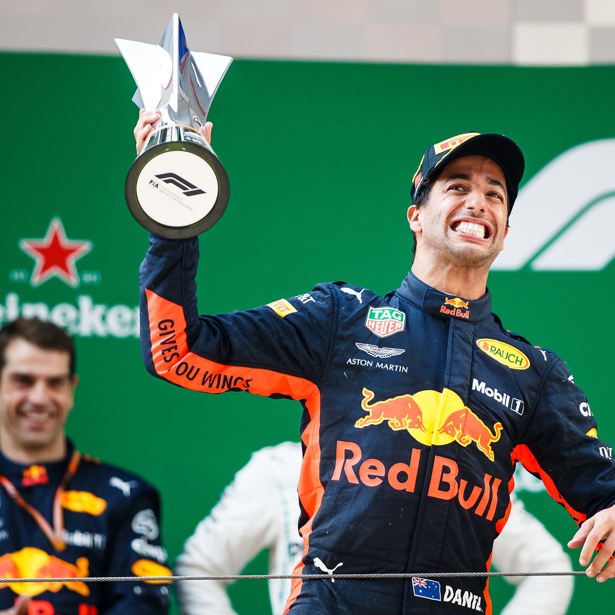 Даниэль Риккардо: "Мне сложно подобрать слова - так меня сильно переполняют эмоции. Это была очень важная гонка в моей карьере, это была важная победа. Я стартовал далеко не первым, но благодаря отличной стратегии мы смогли реализовать свою мечту.