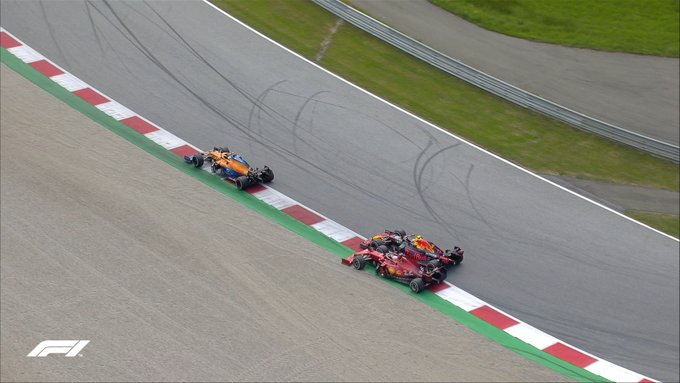 16:23:33 - 15 кругов: Ферстаппен - 6.9 с - Норрис - 0.5 с - Хэмилтон - 3.8 с - Боттас - 16.9 с - Феттель - 0.9 с - Риккардо - 0.5 с - Леклер - 0.9 с - Перес - 0.5 с - Сайнс - 2.2 с - Расселл