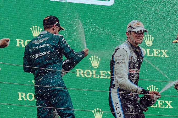 Всю гонку Себастьян Феттель боролся за победу с Эстебаном Оконом из Alpine, но в итоге финишировал вторым. Для пилота Aston Martin это второй подиум в сезоне после второго места в Баку.
