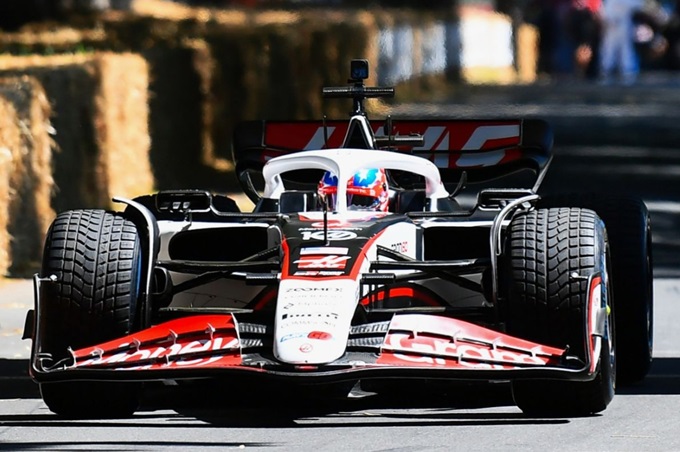 Команда Haas существует уже 10 лет, но только сейчас Джин сел за руль собственной машины Формулы-1. Он проехал по трассе в Гудвуде за рулем VF-23 2023 года.