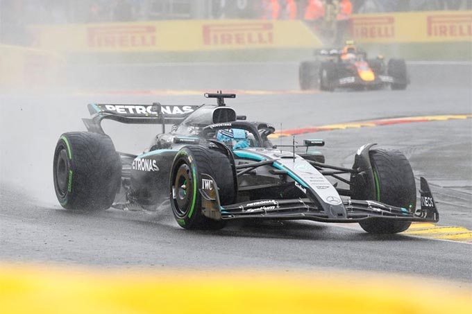Джордж Расселл: "Любому пилоту хочется гоняться, даже под дождем. Но факт в том, что когда вы пролетаете поворот "Красная вода" на скорости под 300 км/ч, то вы ничего там не видите. С таким же успехом можно просто повесть повязку на глаза. Это уже не гонки - это уже глупость".
