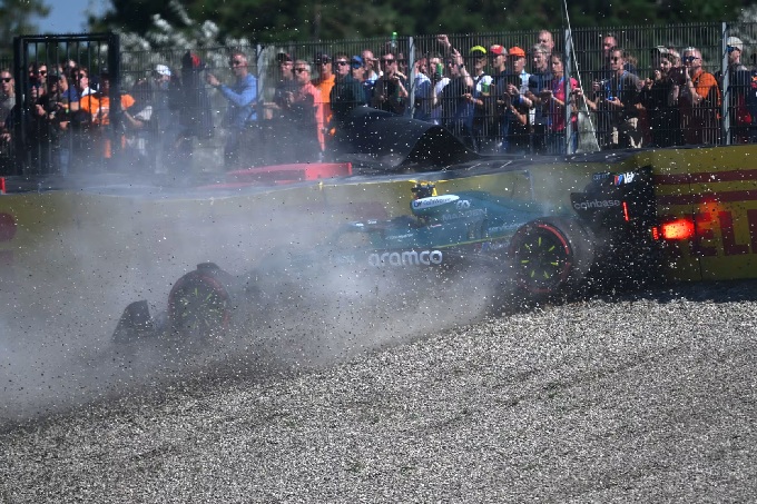 Произошло это из-за очередной аварии. Канадец потерял контроль над машиной в последнем повороте, долетел до барьера и повредил переднюю подвеску. Лэнс самостоятельно добрался до боксов, но на трассу уже не вернулся.