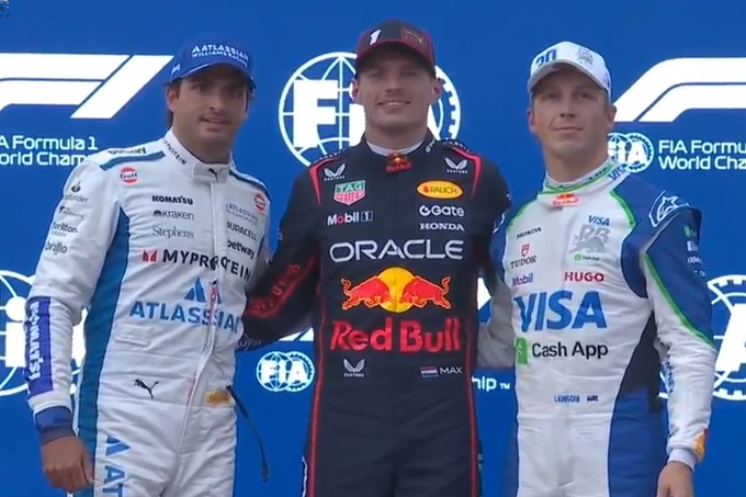 Пилот Red Bull Макс Ферстаппен выиграл квалификацию Гран-При Азербайджана в Баку, которая шесть раз прерывалась красными флагами и растянулась на два часа. Вторым стал Карлос Сайнс из Williams, третьим - Лиам Лоусон из Racing Bulls.