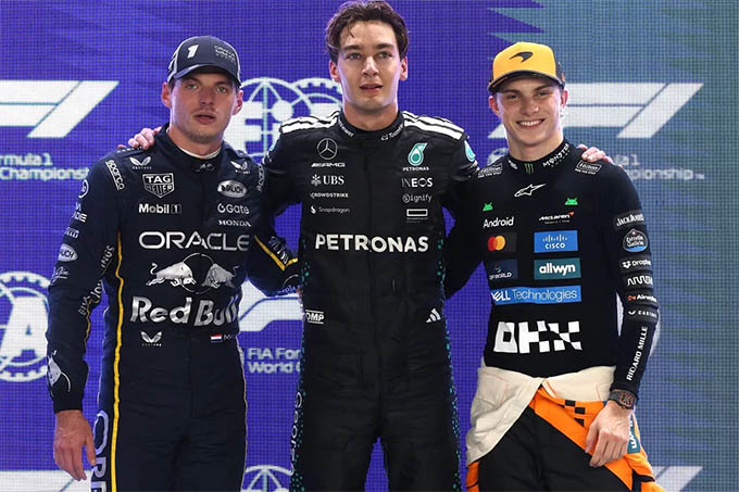 Первая попытка в финале осталась за Расселлом: 1:29.165 против 1:29.340 у Ферстаппена и 1:29.524 у Пиастри. Во второй попытке Макс и Оскар свои результаты не улучшили, а Джордж снял еще 0.007 секунды и стал обладателем поула.