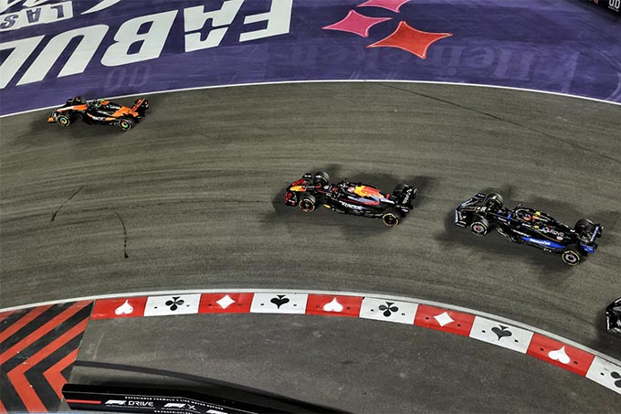 На старте гонки в Лас-Вегасе обладатель поула Ландо Норрис сразу же попытался перекрыть траекторию Максу Ферстаппену, но ошибся на торможении в первом повороте и потерял две позиции.