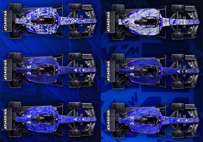 На первые тесты 2026 года многие команды, как ожидается, привезут машины в необычной тестовой раскраске. Вот и в Williams предложили на выбор шесть вариантов.