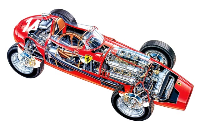 Разработка двигателя для новой машины началась еще в 1956 году под руководством молодого инженера Дино Феррари, сына Энцо Феррари, который выбрал конфигурацию V6, необычную по тем временам для Формулы-1. К сожалению, Феррари-младший не смог довести дело конца - в конце 1956 года он умер от хронической болезни почек. Смерть единственного сына тяжело отразилась на Комендаторе. Он стал все меньше появляться на публике, постоянно носил черные очки. В будущем все машины Ferrari с двигателем V6, гоночные и дорожные, получали приставку "Dino".